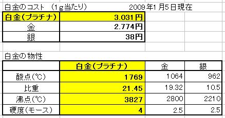 ※白金の値段は金よりも高く、銀の100倍