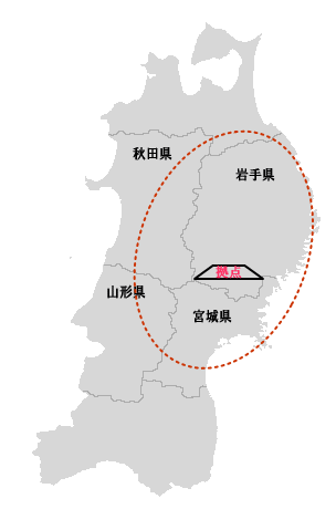 岩手県内全域・宮城県北部・秋田県南部・山形県北部